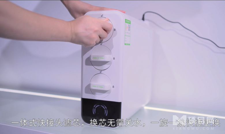 打開廚下柜瞬間,我終于明白這款凈水機(jī)為何能成為小戶型救星 ——352×130×310mm 的體積僅相當(dāng)于一包 A4 紙,卻裝下了三芯四級(jí)精濾系統(tǒng)。傳統(tǒng)凈水機(jī)的 “傻大笨粗” 在這里徹底消失,即便柜內(nèi)塞滿洗碗機(jī)、米箱,它也能穩(wěn)穩(wěn)嵌在縫隙里,甚至能直接放在臺(tái)面上搭配極簡(jiǎn)裝修。